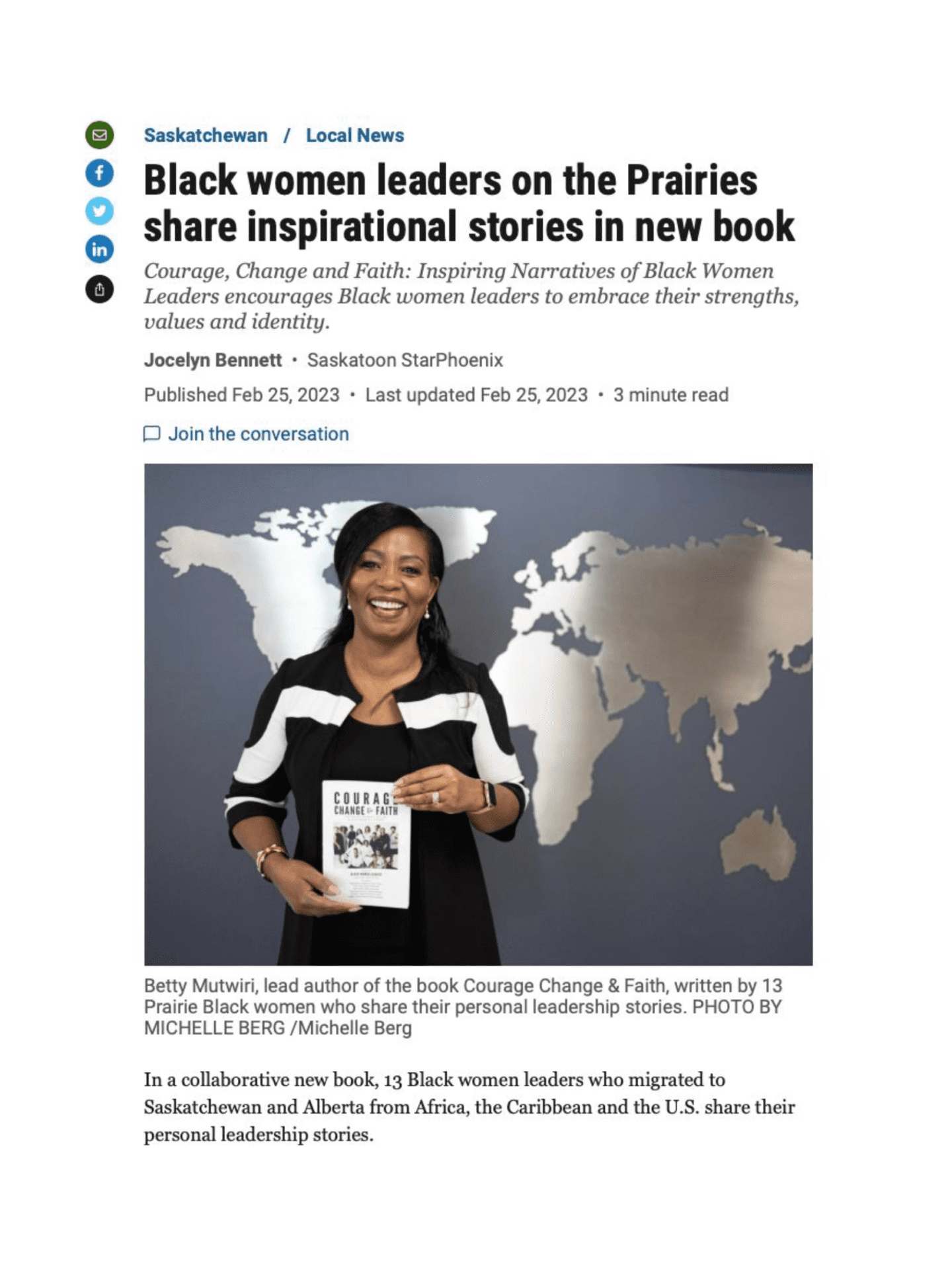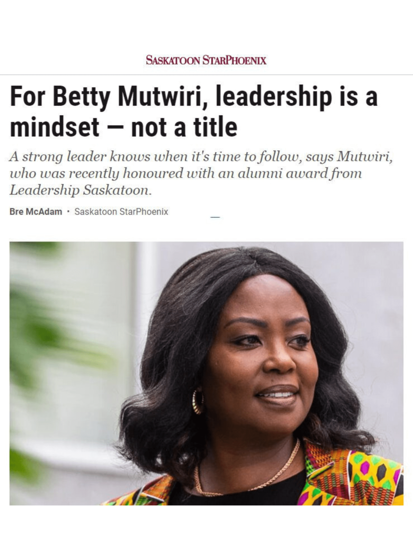 Betty’s impact extends to the community as well. As the inaugural Executive Director for Leadership Saskatoon, she established a thriving multi-sector community leadership program, earning her the esteemed 2021 Don Ravis Leadership Saskatoon Alumni Award; Canada’s Top 100 Black Women to Watch of 2022; Queen Elizabeth II Platinum Jubilee Award 2022; RBC Woman of Influence 2023; Women in Leadership DEI Champion 2022-2023.